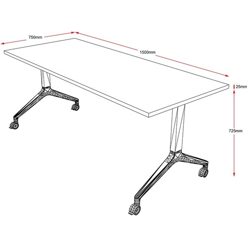 Rapidline Flip Top Table 1500W x 750D x 730mmH Beech Top Silver Frame
