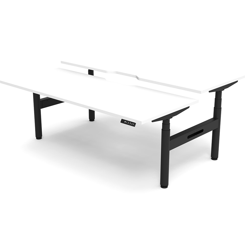 White top with Black frame. Unit Dimension: 1800mm W x 1500mm D x 620-1270mm H. 750mm depth per user. E0 rated top. Powdercoat base. Digital control panel with 3 pre-set positions, LED display panel, keypad safety lock & reminder alarm setting. Anti-collision technology, noise emission of less than 50DB. Lifting capacity of 120kg with a max speed of 38mm per second. 70mm diameter round column legs. 700mm wide foot size with adjustable leveling feet, return foot: 700mm. 10 Year Manufacturer's Warranty. Delivery, installation and assembly charges may apply to furniture. Please enquire to confirm.