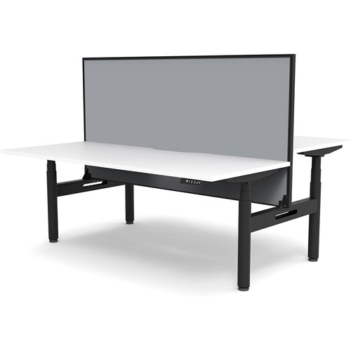 White top with Black frame. Unit Dimension: 1800mm W x 1500mm D x 1330mm H. 620-1270mm height range for desk, 750mm depth per user. E0 rated top. Powdercoat base. Digital control panel with 3 pre-set positions, LED display panel, keypad safety lock & reminder alarm setting. Anti-collision technology, noise emission of less than 50DB. Lifting capacity of 120kg with a max speed of 38mm per second. 70mm diameter round column legs. 700mm wide foot size with adjustable leveling feet, return foot: 700mm. Comes with 30mm thick privacy screen. 10 Year Manufacturer's Warranty. Delivery, installation and assembly charges may apply to furniture. Please enquire to confirm.