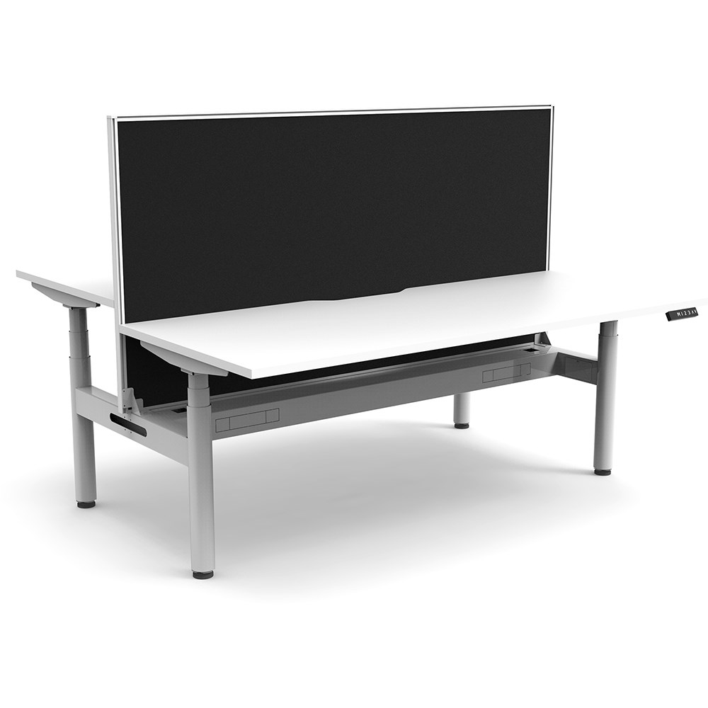 White top with White frame. Unit Dimension: 1200mm W x 1500mm D x 1330mm H. 620-1270mm height range for desk, 750mm depth per user. E0 rated top. Powdercoat base. Digital control panel with 3 pre-set positions, LED display panel, keypad safety lock & reminder alarm setting. Anti-collision technology, noise emission of less than 50DB. Lifting capacity of 120kg with a max speed of 38mm per second. 70mm diameter round column legs. 700mm wide foot size with adjustable leveling feet, return foot: 700mm. Comes with 30mm thick privacy screens and cable tray for cable management. 10 Year Manufacturer's Warranty. Delivery, installation and assembly charges may apply to furniture. Please enquire to confirm.