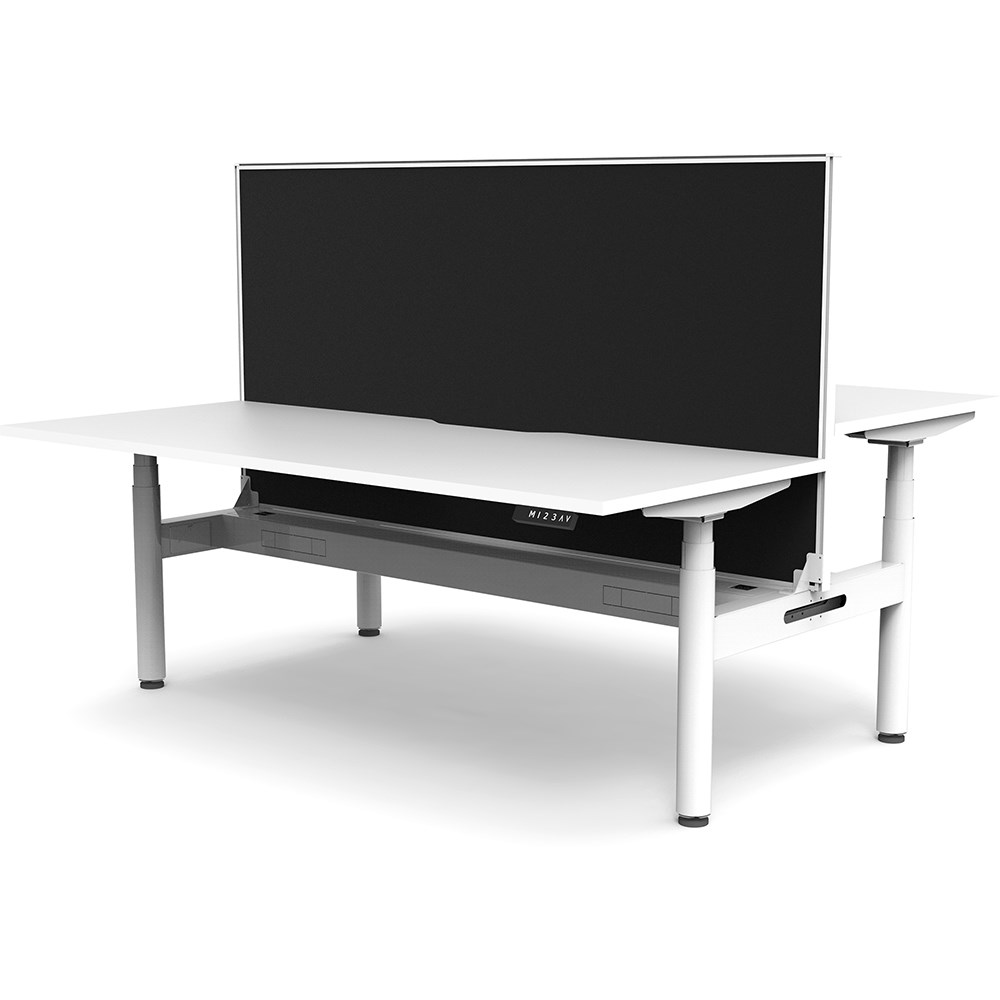 White top with White frame. Unit Dimension: 1500mm W x 1500mm D x 1330mm H. 620-1270mm height range for desk, 750mm depth per user. E0 rated top. Powdercoat base. Digital control panel with 3 pre-set positions, LED display panel, keypad safety lock & reminder alarm setting. Anti-collision technology, noise emission of less than 50DB. Lifting capacity of 120kg with a max speed of 38mm per second. 70mm diameter round column legs. 700mm wide foot size with adjustable leveling feet, return foot: 700mm. Comes with 30mm thick privacy screens and cable tray for cable management. 10 Year Manufacturer's Warranty. Delivery, installation and assembly charges may apply to furniture. Please enquire to confirm.