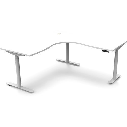 White top with White frame. Unit Dimension: 1800/1500mm W x 750mm D x 620-1270mm H. E0 rated top. Powdercoat base. Digital control panel with 3 pre-set positions, LED display panel, keypad safety lock & reminder alarm setting. Anti-collision technology, noise emission of less than 50DB. Lifting capacity of 120kg with a max speed of 38mm per second. 70mm diameter round column legs. 700mm wide foot size with adjustable leveling feet, return foot: 700mm. 10 Year Manufacturer's Warranty. Delivery, installation and assembly charges may apply to furniture. Please enquire to confirm.