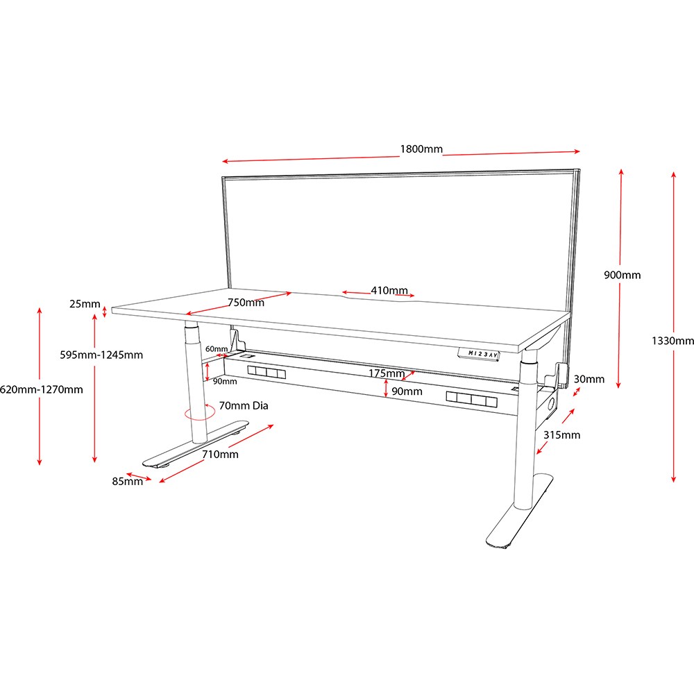 • Unit Dimension: 1800mm W x 750mm D x 620-1270mm H.