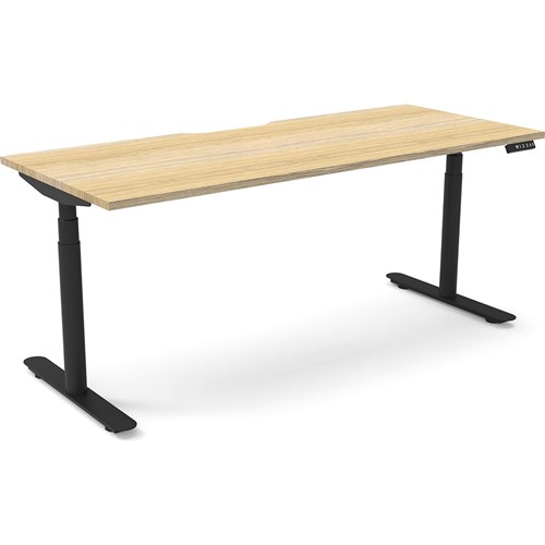Natural Oak top with Black frame. Unit Dimension: 1800mm W x 750mm D x 620-1270mm H. E0 rated top. Powdercoat base. Digital control panel with 3 pre-set positions, LED display panel, keypad safety lock & reminder alarm setting. Anti-collision technology, noise emission of less than 50DB. Lifting capacity of 120kg with a max speed of 38mm per second. 70mm diameter round column legs. 700mm wide foot size with adjustable leveling feet, return foot: 700mm. 10 Year Manufacturer's Warranty. Delivery, installation and assembly charges may apply to furniture. Please enquire to confirm.