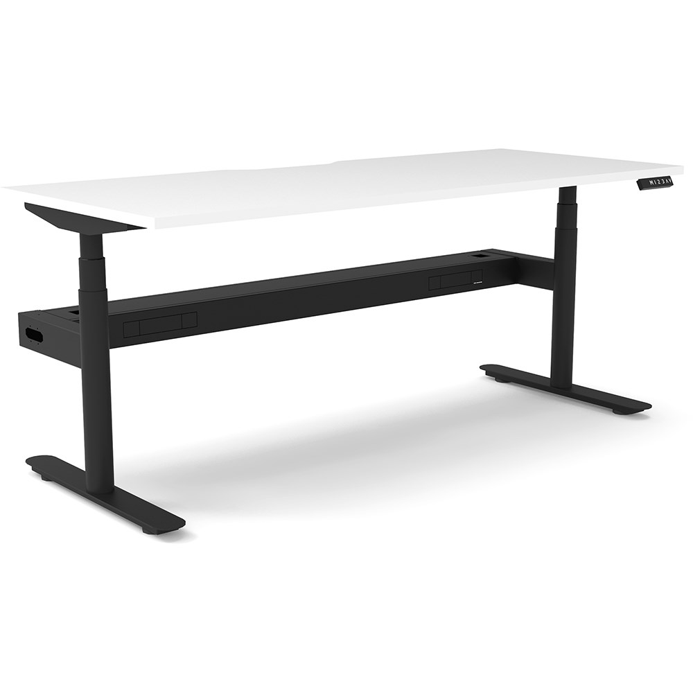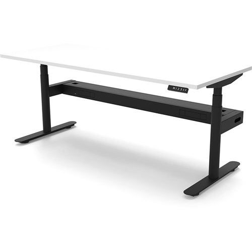 White top with Black frame. Unit Dimension: 1200mm W x 750mm D x 620-1270mm H. Comes with cable tray for cable management. E0 rated top. Powdercoat base. Digital control panel with 3 pre-set positions, LED display panel, keypad safety lock & reminder alarm setting. Anti-collision technology, noise emission of less than 50DB. Lifting capacity of 120kg with a max speed of 38mm per second. 70mm diameter round column legs. 700mm wide foot size with adjustable leveling feet, return foot: 700mm. Comes with cable tray for cable management. 10 Year Manufacturer's Warranty. Delivery, installation and assembly charges may apply to furniture. Please enquire to confirm.