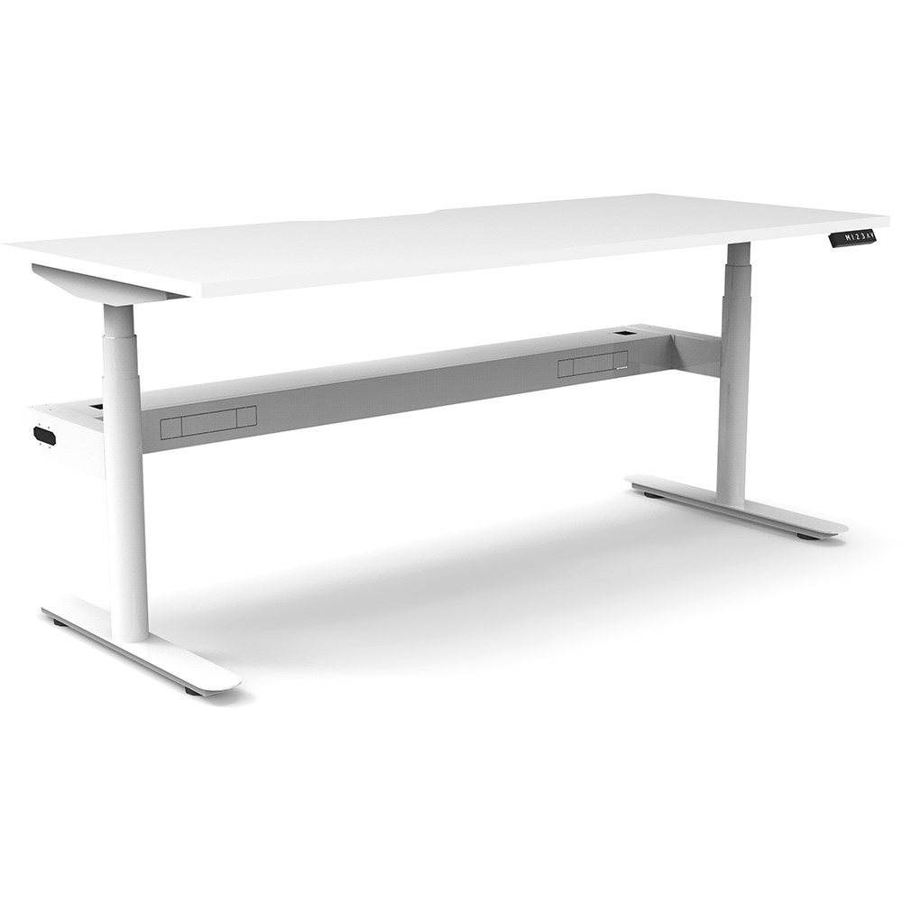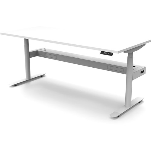 White top with White frame. Unit Dimension: 1200mm W x 750mm D x 620-1270mm H. Comes with cable tray for cable management. E0 rated top. Powdercoat base. Digital control panel with 3 pre-set positions, LED display panel, keypad safety lock & reminder alarm setting. Anti-collision technology, noise emission of less than 50DB. Lifting capacity of 120kg with a max speed of 38mm per second. 70mm diameter round column legs. 700mm wide foot size with adjustable leveling feet, return foot: 700mm. Comes with cable tray for cable management. 10 Year Manufacturer's Warranty. Delivery, installation and assembly charges may apply to furniture. Please enquire to confirm.