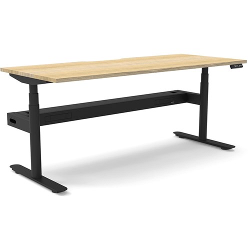 Natural Oak top with Black frame. Unit Dimension: 1500mm W x 750mm D x 620-1270mm H. Comes with cable tray for cable management. E0 rated top. Powdercoat base. Digital control panel with 3 pre-set positions, LED display panel, keypad safety lock & reminder alarm setting. Anti-collision technology, noise emission of less than 50DB. Lifting capacity of 120kg with a max speed of 38mm per second. 70mm diameter round column legs. 700mm wide foot size with adjustable leveling feet, return foot: 700mm. Comes with cable tray for cable management. 10 Year Manufacturer's Warranty. Delivery, installation and assembly charges may apply to furniture. Please enquire to confirm.