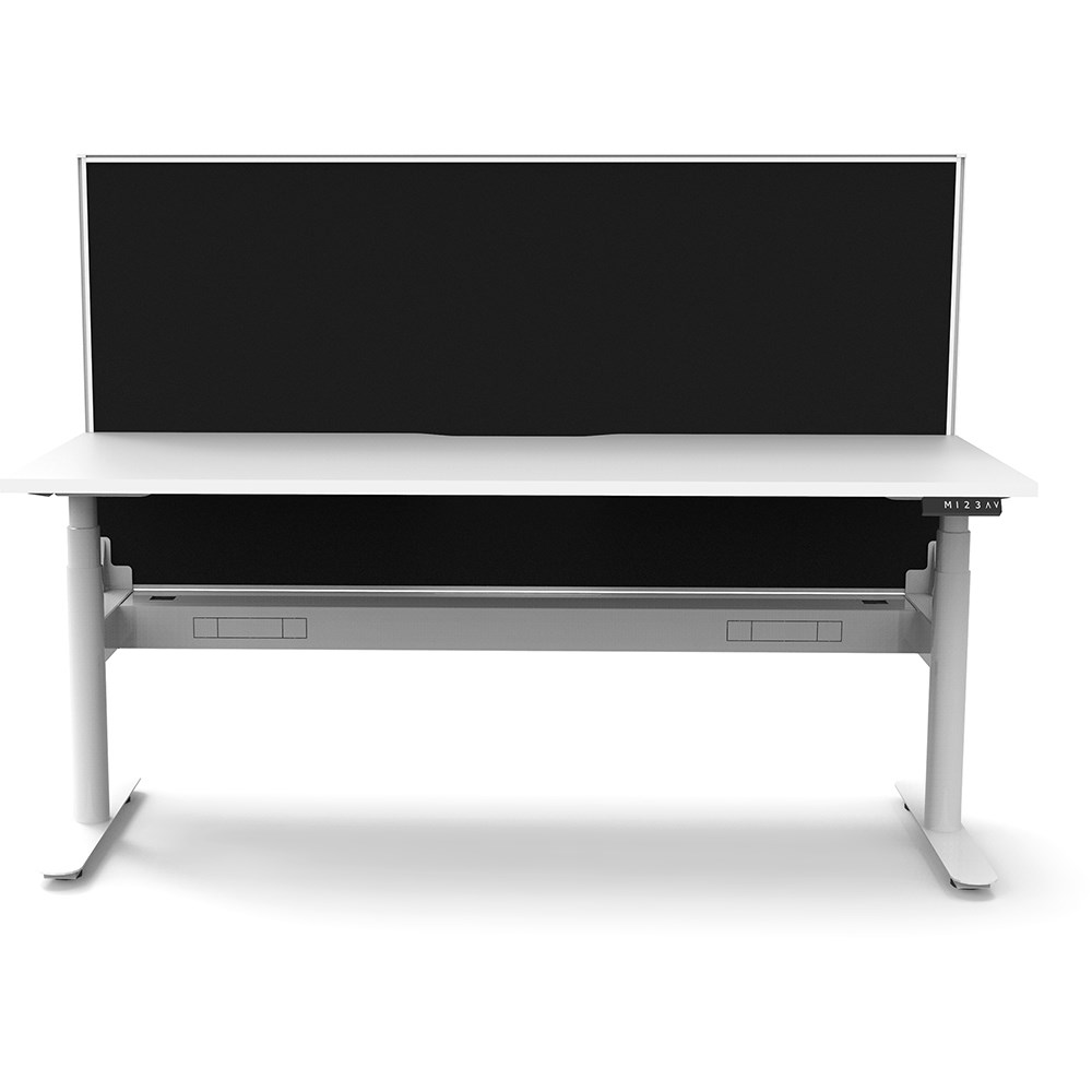 White top with White frame. Unit Dimension: 1200mm W x 750mm D x 1330mm H. 620-1270mm height range for desk. E0 rated top. Powdercoat base. Digital control panel with 3 pre-set positions, LED display panel, keypad safety lock & reminder alarm setting. Anti-collision technology, noise emission of less than 50DB. Lifting capacity of 120kg with a max speed of 38mm per second. 70mm diameter round column legs. 700mm wide foot size with adjustable leveling feet, return foot: 700mm. Comes with 30mm thick privacy screens and cable tray for cable management. 10 Year Manufacturer's Warranty. Delivery, installation and assembly charges may apply to furniture. Please enquire to confirm.