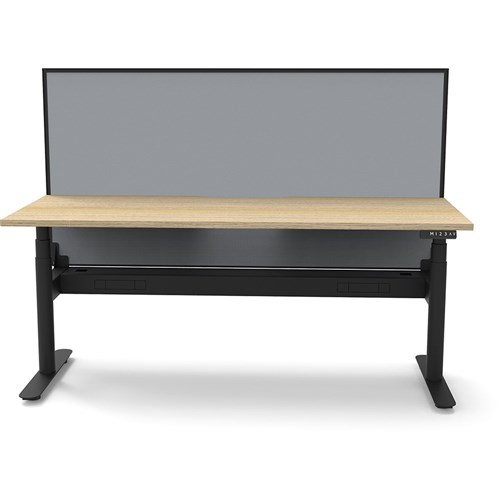 Natural Oak top with Black frame. Unit Dimension: 1500mm W x 750mm D x 1330mm H. 620-1270mm height range for desk. E0 rated top. Powdercoat base. Digital control panel with 3 pre-set positions, LED display panel, keypad safety lock & reminder alarm setting. Anti-collision technology, noise emission of less than 50DB. Lifting capacity of 120kg with a max speed of 38mm per second. 70mm diameter round column legs. 700mm wide foot size with adjustable leveling feet, return foot: 700mm. Comes with 30mm thick privacy screens and cable tray for cable management. 10 Year Manufacturer's Warranty. Delivery, installation and assembly charges may apply to furniture. Please enquire to confirm.