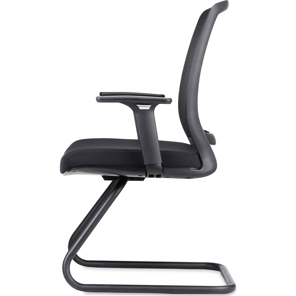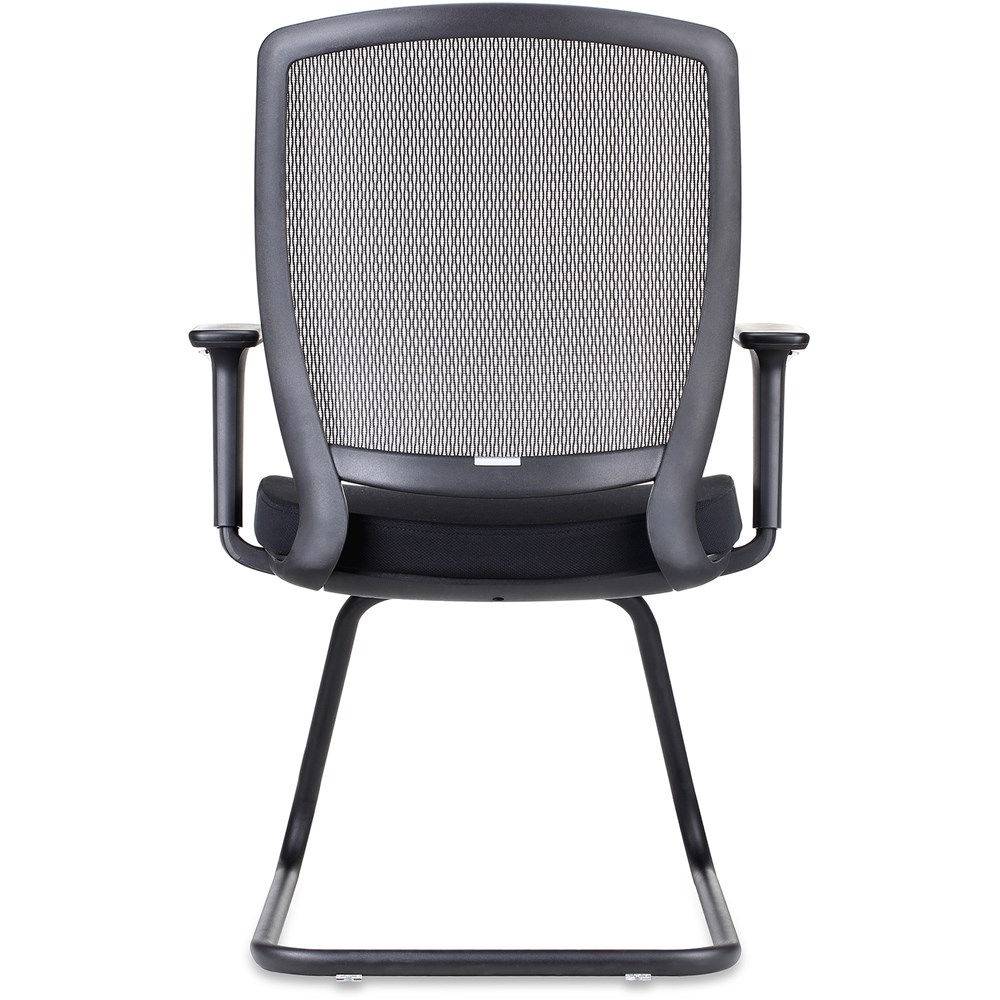 • Mesh back visitor chair with ample seat and back size and adjustable arms, with modern black cantilever base. Ideal visitor chair to go with any mesh back desk chair or use as meeting chair.