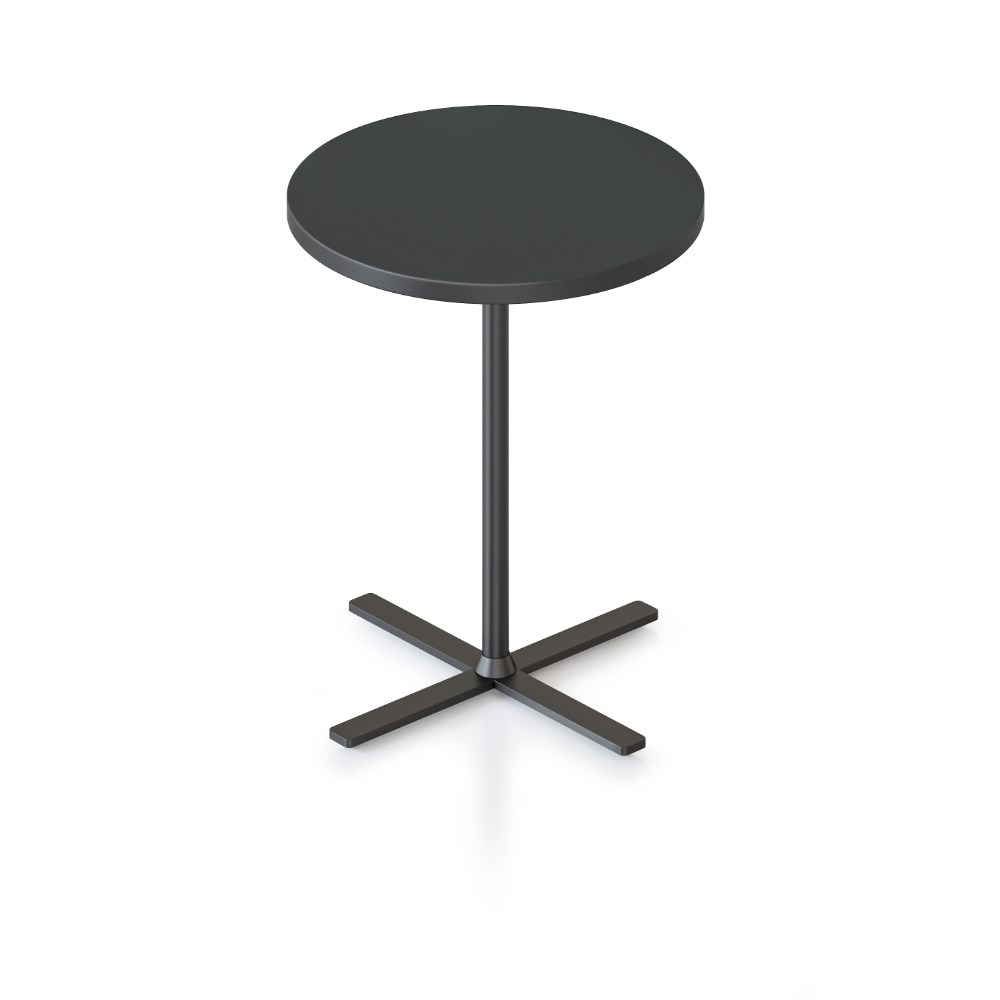 Dimensions: 500mm Diameter x 587mm High. 25mm thick table top. 4 leaf cross base powder coated underframe. Adjustable leveling feet. E0 enviroboard melamine worksurface. Note: Order with 457mmH Kolo table to create a nesting pair. 5 Year Manufacturer's Warranty. Delivery, installation and assembly charges may apply to furniture. Please enquire to confirm.
