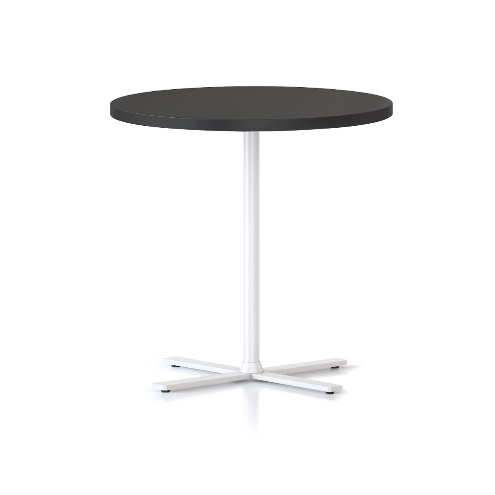 Dimensions: 600mm Diameter x 587mm High. 25mm thick table top. 4 leaf cross base powder coated underframe. Adjustable leveling feet. E0 enviroboard melamine worksurface. Note: Order with 457mmH Kolo table to create a nesting pair. 5 Year Manufacturer's Warranty. Delivery, installation and assembly charges may apply to furniture. Please enquire to confirm.