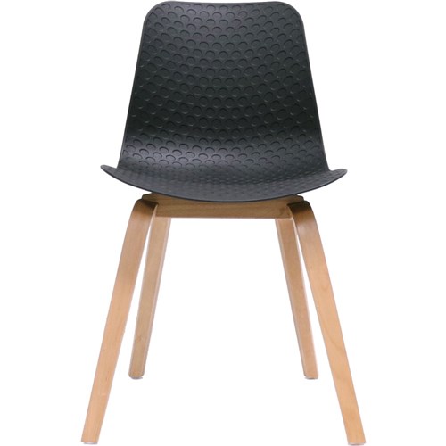 Rapidline Lucid Breakout Room Chair Light Oak Timber Leg Black Patterned Poly Shell