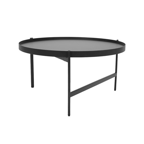 Dimensions: 800mm Diameter x 435mm High. Black melamine table top. Black powder coated cross brace underframe. Adjustable leveling feet. E0 enviroboard table top. Suite different size coffee tables together to create table nest. See product code 3091563. 5 Year Manufacturer's Warranty. Delivery, installation and assembly charges may apply to furniture. Please enquire to confirm.