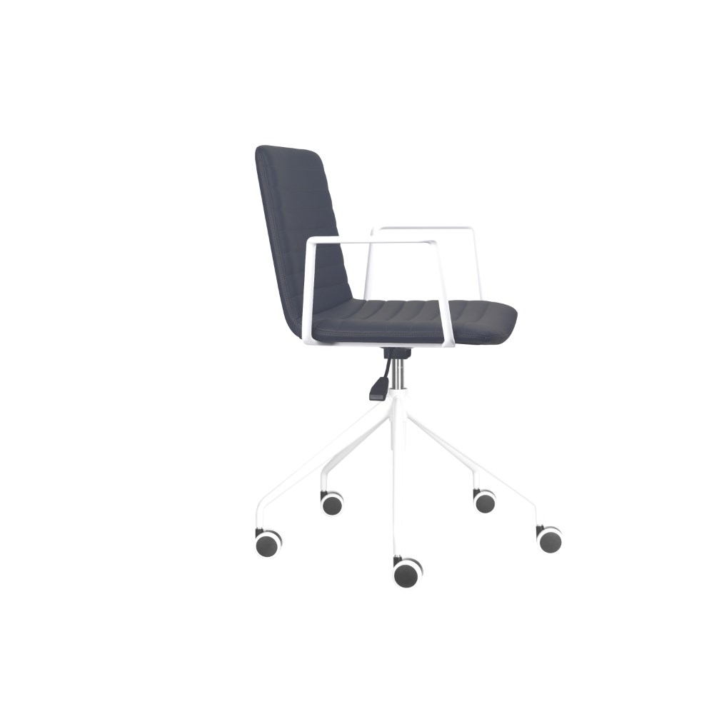 Dimensions: 630W x 630D x 830mm-875mmH. Seat Width: 450mm. Seat Depth: 420mm. Seat Height: 470mm-515mm. Back Height: 380mm. Back Width: 450mm - 370mm. Includes a set of 2 fixed height Loop arm rests finished in white powder coating. PU leather upholstery with ribbed stitching detail. 5 Star base and gas strut finished in white powder coating. 120kg weight rating. 5 Year Manufacturer's Warranty. Delivery, installation and assembly charges may apply to furniture. Please enquire to confirm.