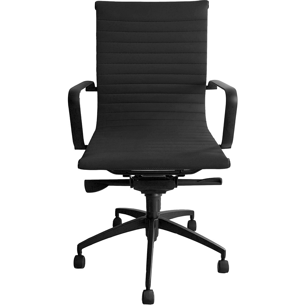 Rapidline PU605M Boardroom Chair Black Base And Arms Medium Back Black Ribbed PU