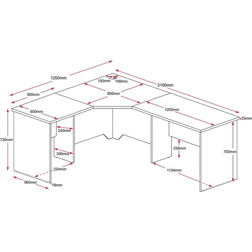 Rapidline Rapid Worker Corner Workstation 1200/2100W x 600D x 730mmH White And Ironstone