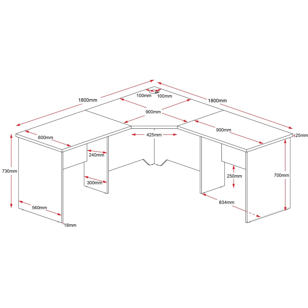 3 piece corner workstation. Matching lockable drawers, mobile pedestal and hob available as extras. E0 enviroboard. 5 Years Manufacturer's Warranty. Delivery, installation and assembly charges may apply to furniture. Please enquire to confirm.