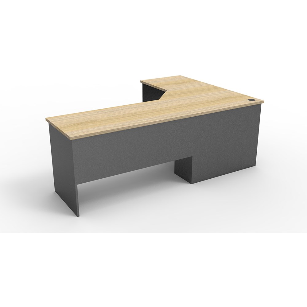 Natural Oak and Ironstone in colour. 3 piece corner workstation. Matching lockable drawers, mobile pedestal and hob available as extras. E0 enviroboard. 5 Years Manufacturer's Warranty. Delivery, installation and assembly charges may apply to furniture. Please enquire to confirm.