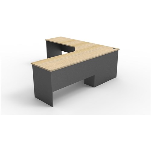Natural Oak and Ironstone in colour. 3 piece corner workstation. Matching lockable drawers, mobile pedestal and hob available as extras. E0 enviroboard. 5 Years Manufacturer's Warranty. Delivery, installation and assembly charges may apply to furniture. Please enquire to confirm.