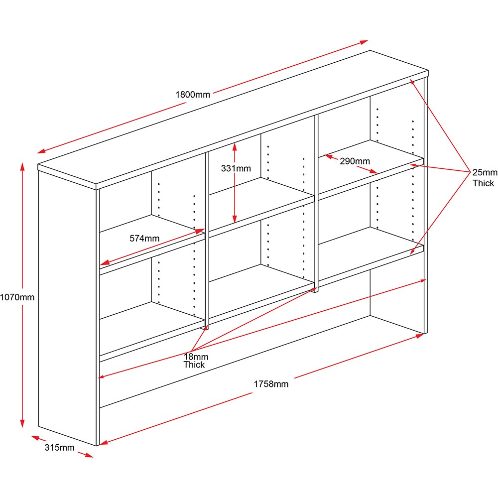 • The hutch comes with adjustable shelves and a space for a monitor under the shelves to maximise desk space, and clear clutter from the desk top.