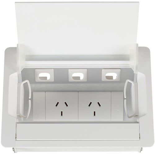 2 x auto switched GPO and provisions for 3 data. Lid closes to obscure power and data points. Links to wall starter or power pole kit. Use in conjunction with SW duct to avoid trip hazard. Unit Dimension: 211.5W x 154D x 115mmH. 2 Year Manufacturer's Warranty.