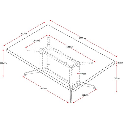 Rapidline Typhoon Boardroom Table 1800W x 900D x 750mmH Oak Top Black Frame