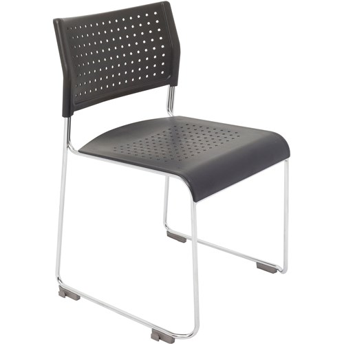 Polypropylene seat and back. Chair Capacity: 110kg. Seat Width: 400mm. Seat Depth: 430mm. Seat Height: 440mm. Back Height: 245mm. Stackable visitor chair, chrome sled base with linking feet attached. Optional seat & back pads available. Optional tablet arm add on available. Fully assembled. Note: Delivery, installation and assembly charges may apply to furniture. Please enquire to confirm. 3 Year Manufacturer's Warranty.