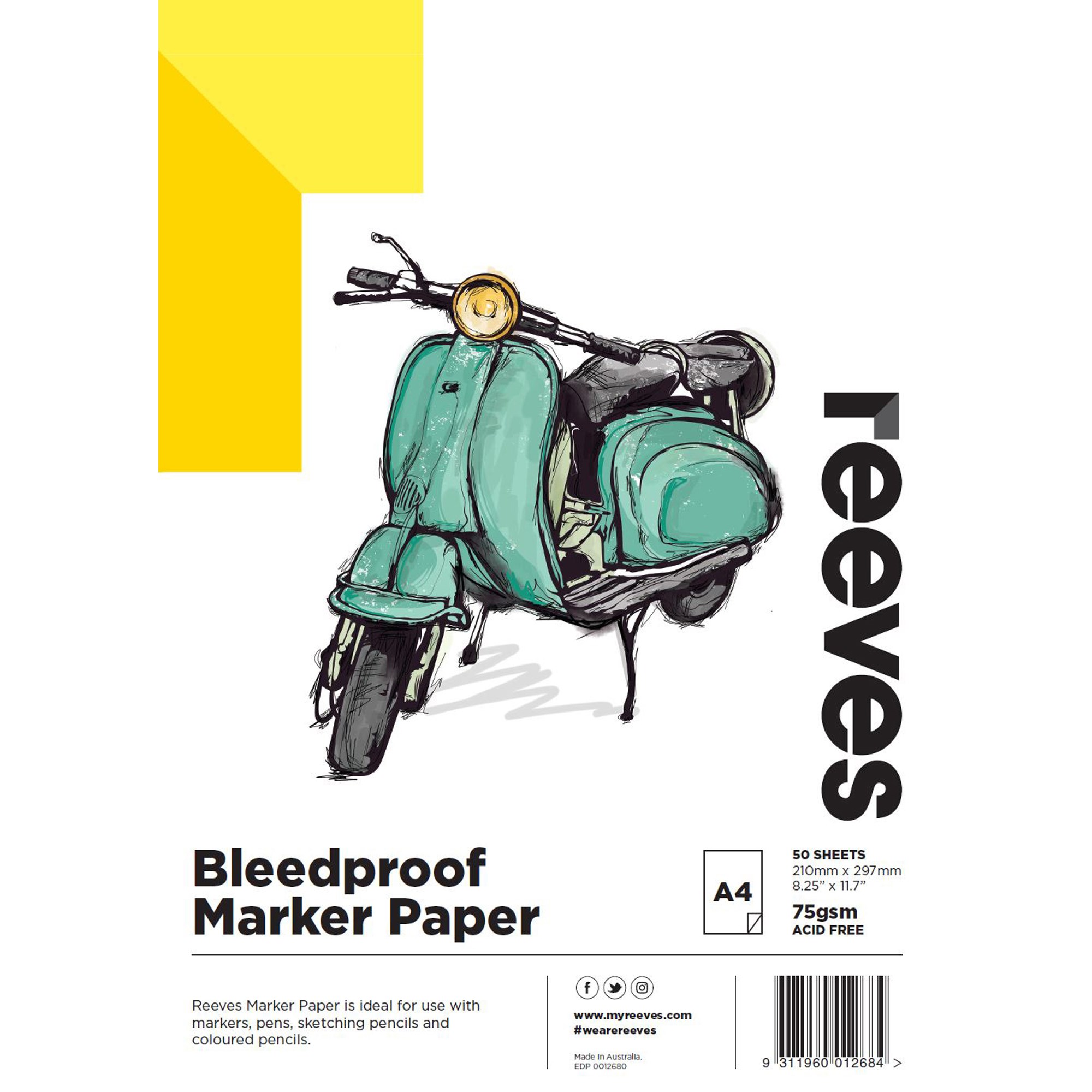 Reeves Bleedproof Paper Pad is ideal for use with markers, pens, sketching pencils and coloured pencils Acid Free Available in A5, A4, A3