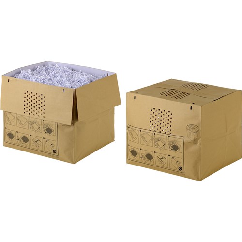 Designed specifically to aid the recycling of shredded paper. Self-Sealing to make waste disposal clean and efficient. Once full, simply seal the bag with contents and put out for recycling. Made from a paper material that can be recycled along with its shredded contents. Suitable for the Rexel Auto+500X/M shredder. Sack capacity: 80L.