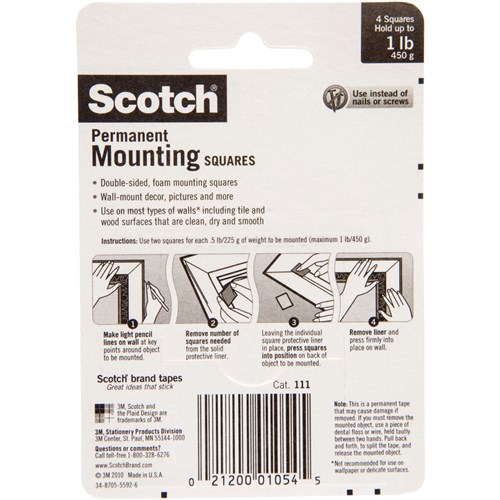Heavy duty permanent mounting solution in pre-cut squares. Ideal for use in the office, classroom or home environment.