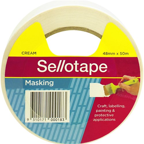 Ideal for general masking, painting and light packing applications. Tape features a write-on surface. Ideal for labelling. Tape width is 48mm. Tape is cream coloured.