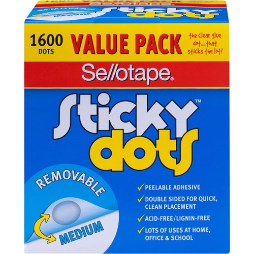 Sellotape Sticky Dots Value Pack 10mm Removable Adhesive Clear Pack of 1600