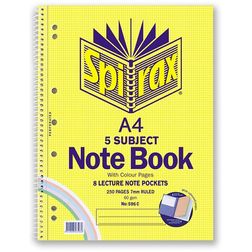 Spirax 596C 5 Subject Notebook Note Pockets/Perforated A4 Ruled 250 Colour Page S/O