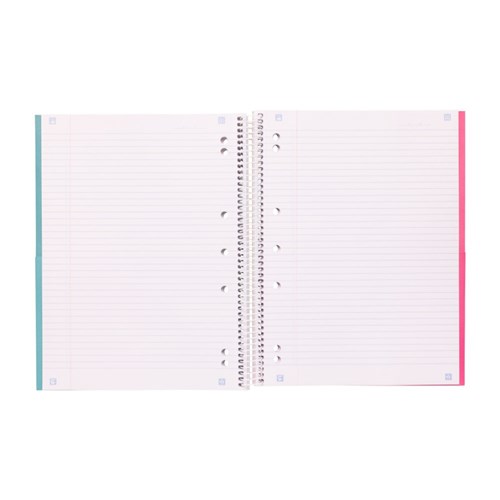 The pages of the books are divided into subjects or sections by the use of pocketed cardboard dividers. Perforated pages. 7-hole punched for use in 2, 3 and 4 ring binders. 7mm ruled lines. Red ruled margin. This Spirax Notebook is now compatible with the free Spirax Study App where you can store your notes digitally and create instant digital flashcards.