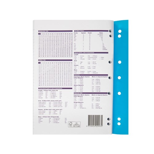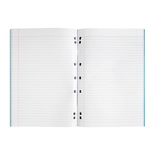 Made with a protective and durable Polypropylene cover to keep your notes protected all year round. 70gsm paper, durable cover and sturdy staple binding to ensure the pages do not come loose. Includes a red ruled margin. 14 hole punch for use in 2, 3 or 4 ring binders. Available in A4 with 48, 64, 96 & 128 Pages. Available in 8mm Ruled, 9mm, 14mm, 18mm Dotted Thirds & Primary rulings.