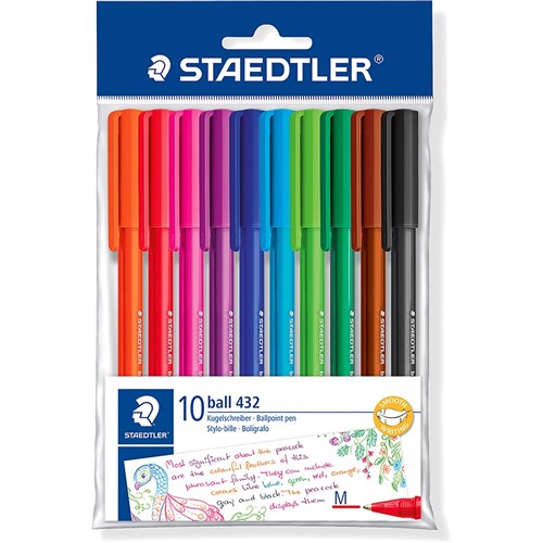 Staedtler 432 Stick Triangular Ballpoint Pen Medium 1.00mm Assorted Pack of 10