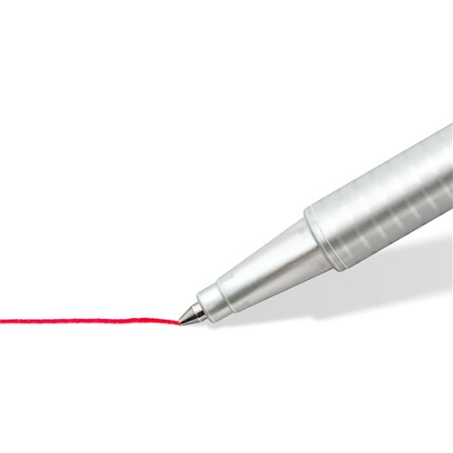 Gel roller in ergonomic triangular shape for relaxed and easy writing. Airplane safe - automatic pressure equalization prevents pen from leaking onboard aircraft. Ideal for everyday writing. Line width approx. 0.7mm Stand up STAEDTLER wallet converts to a convenient desk stand.