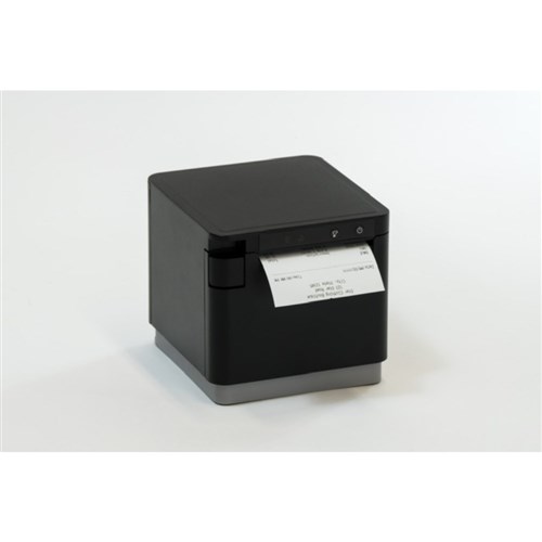 This printer is ideal for countertops. It has a high speed of 250 mm per second. It offers a paper-saving feature to reduce its environmental impact, as well as print-flat technology to ensure high quality printed receipts. It is compatible with thermal rolls measuring 80 x 80 mm and 57 x 57 mm. It is compatible with iOS, iPadOS and Android. It is a compact, 3-inch front-loading and front-exiting printer in black. It has a flat-top design and a splash-proof enclosure to protect the printer from hazards like water, debris, and insects when used outdoors or in harsh environments. You can bundle this with a variety of other items in your workspace to create a streamlined point of sale setup. It supports a Cash Drawer connection (Port-RJ-11). 1 Year Manufacturer's Warranty.