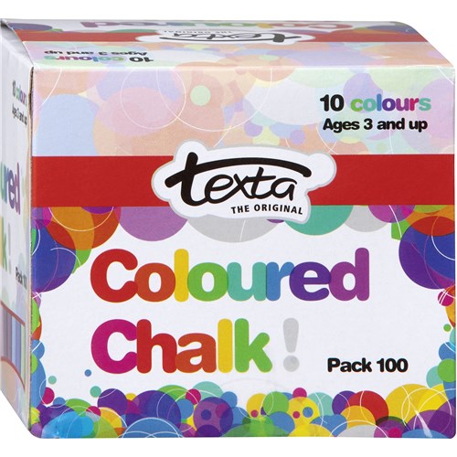Texta chalk is perfect for all blackboard use. Dust free formula. Vibrant colours. Asbestos free. Available in a Pack of 10 or a Pack of 100.