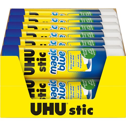 Goes on blue and makes glue application easy Large 40gm Blue Stic is long-lasting Dries clear and keeps documents clean and crisp Screw cap prevents glue from drying out Non-toxic, solvent-free and safe for kids to use Cold washable for fast and convenient clean-up Formula made from 98% natural ingredients, including water