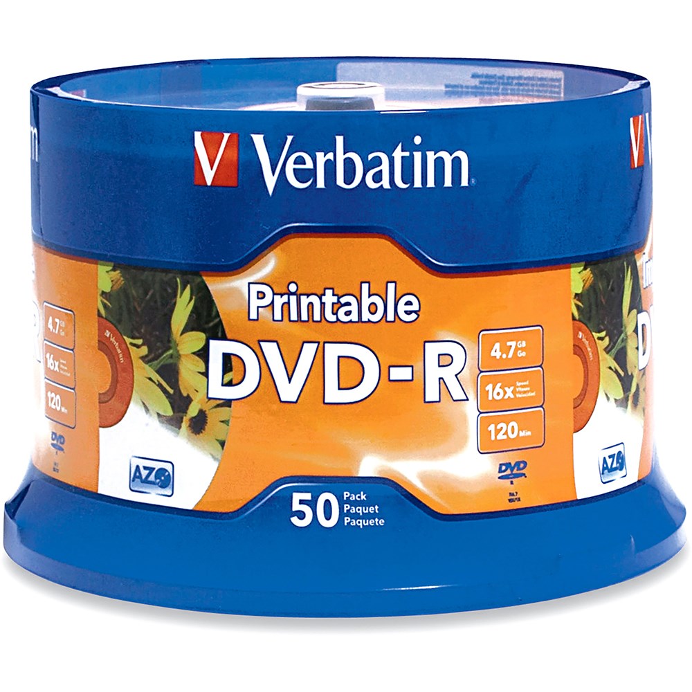 Verbatim Recordable DVD-R 120Min 4.7GB 16X Inkjet Printable Pack Of 50 White