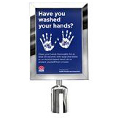 Suits VQ2442B (2298226). Polished stainless steel finish not just chrome plated. 2 sheets of clear 2mm Perspex (supplied) simply slide in from the top. Uniquely supplied with an easy screw into the pole design, attaches in seconds. Suitable for the Retracta Q Stands only.