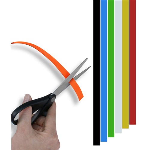 Magnetic Strips with a writable surface - the perfect blend of functionality and creativity for your whiteboards and metal surfaces. Elevate your classroom with a range of colorful magnetic solutions designed to bring a pop of color to any space. Can be cut to any shape with a sharp knife or scissors to suite your special requirements and can be written on with permanent or water based markers. Magnetic backing, writable front surface. Strips are 300mm long and are also available in widths of 10mm, 13mm and 25mm. Also available in Black, Blue, Green, White, Yellow, Red and Orange.