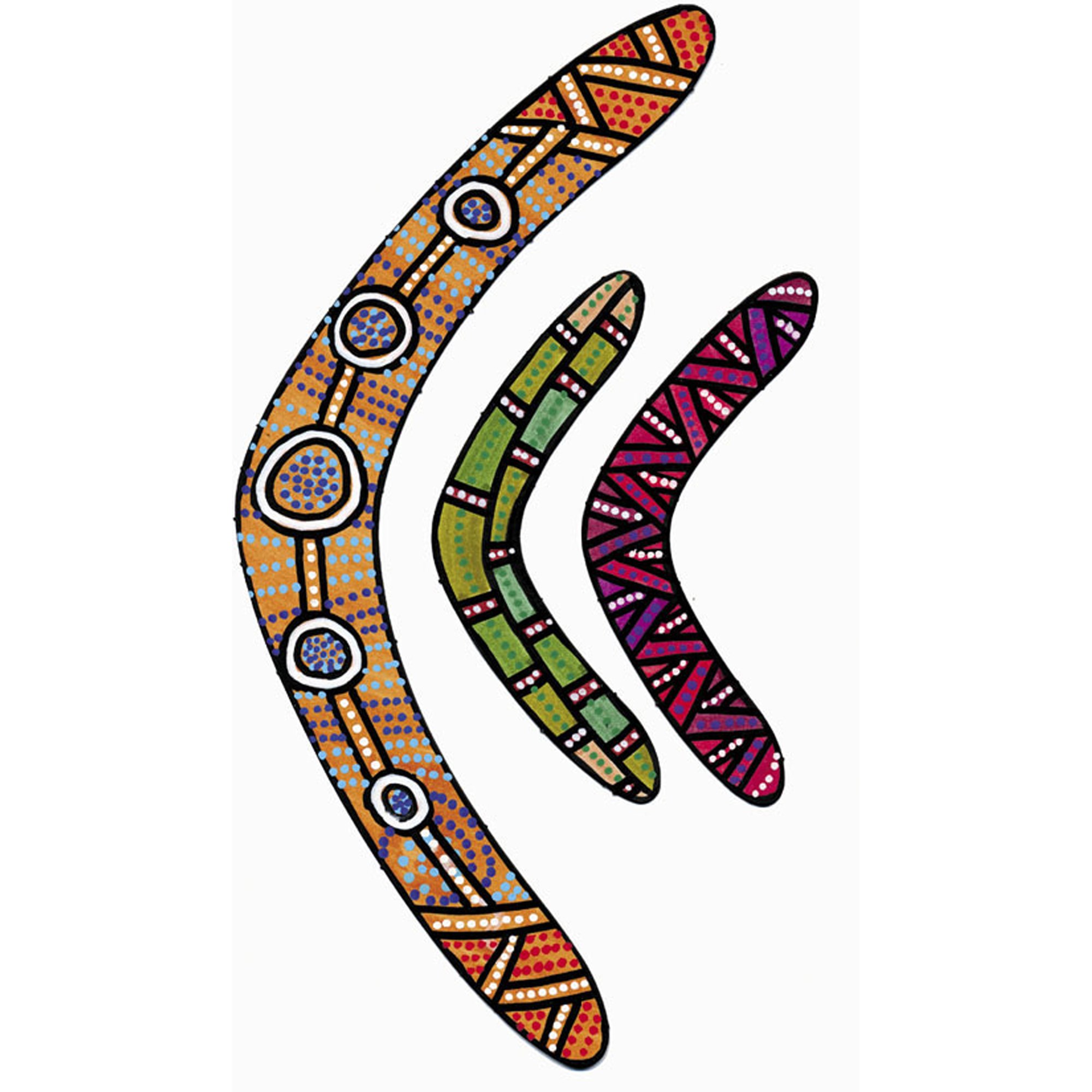 • Cardboard Boomerangs, 3 large (26 cm long) and 3 small (13 cm long) per sheet.