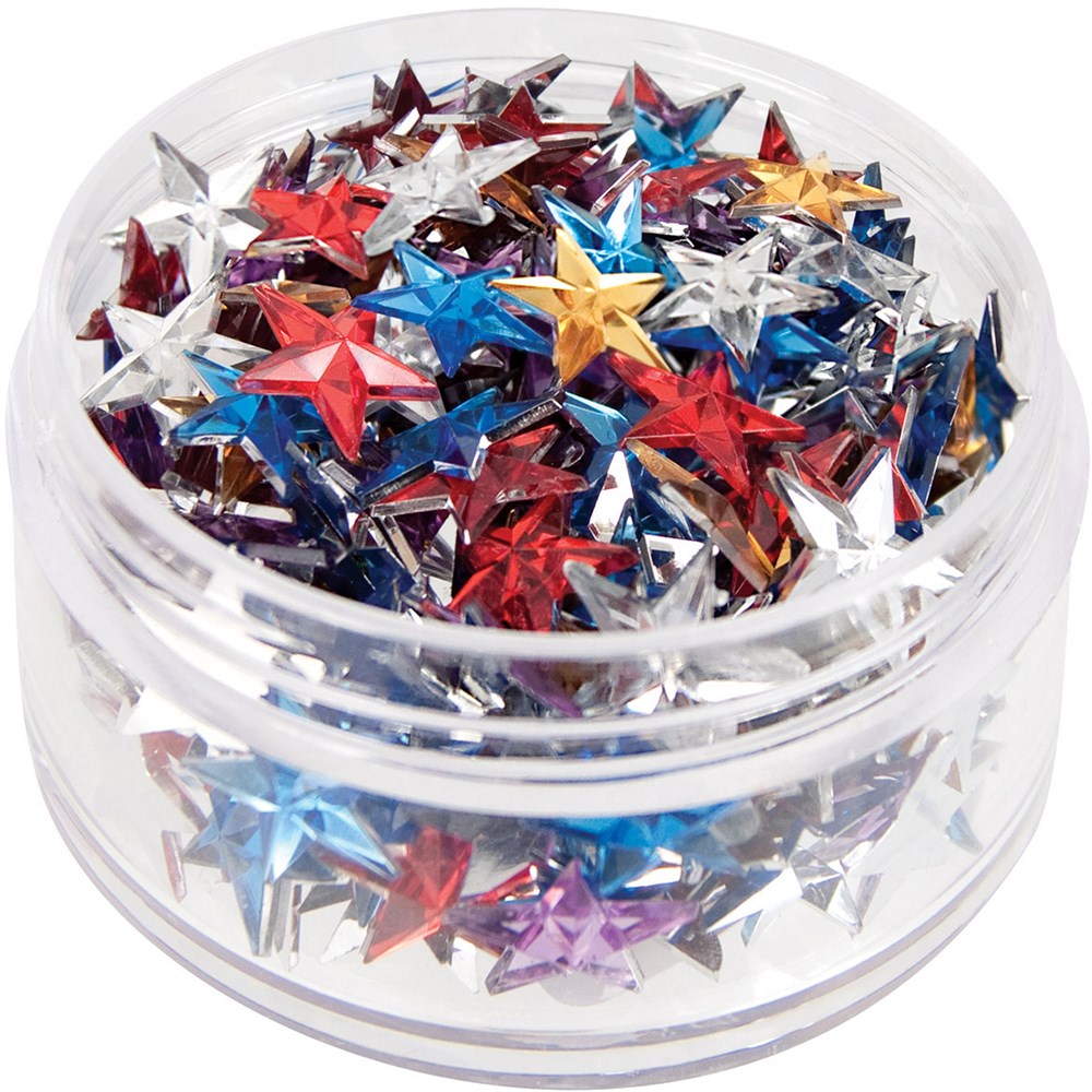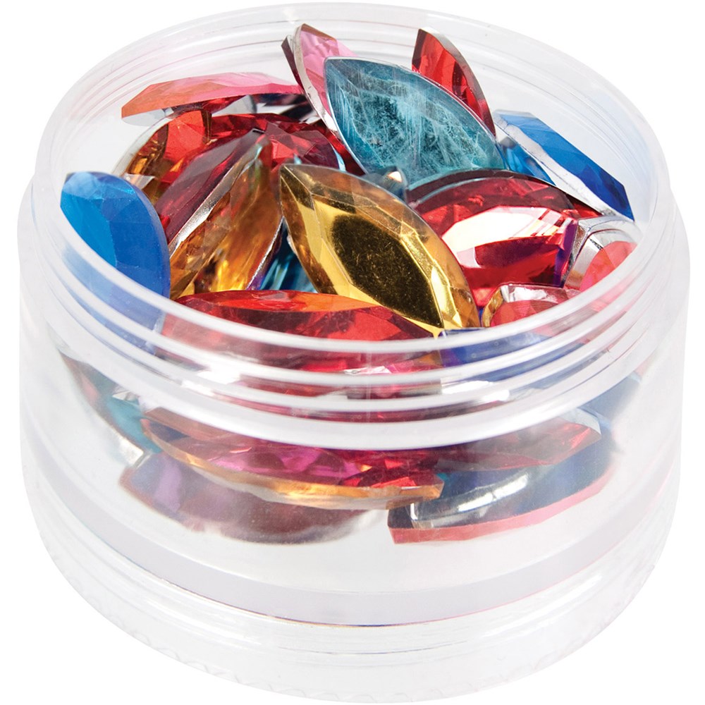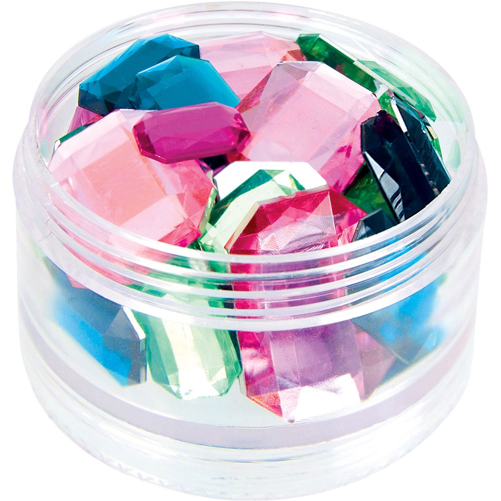 This jewel selection contains an assortment of shapes in bright colours. Ideal for collage work, craft projects, costumes, and decorative jewellery, use Craft Glue or Supertac for a firm bond. Comes in a handy stackable container. Dimensions vary, 7mm-20mm. Qty: 45 (approx. ).