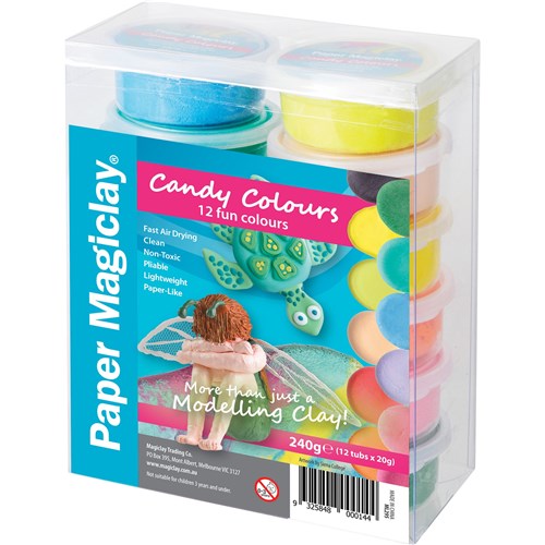 Bright assorted colours. Air dying paper clay. Lightweight. Bonds wet to dry.